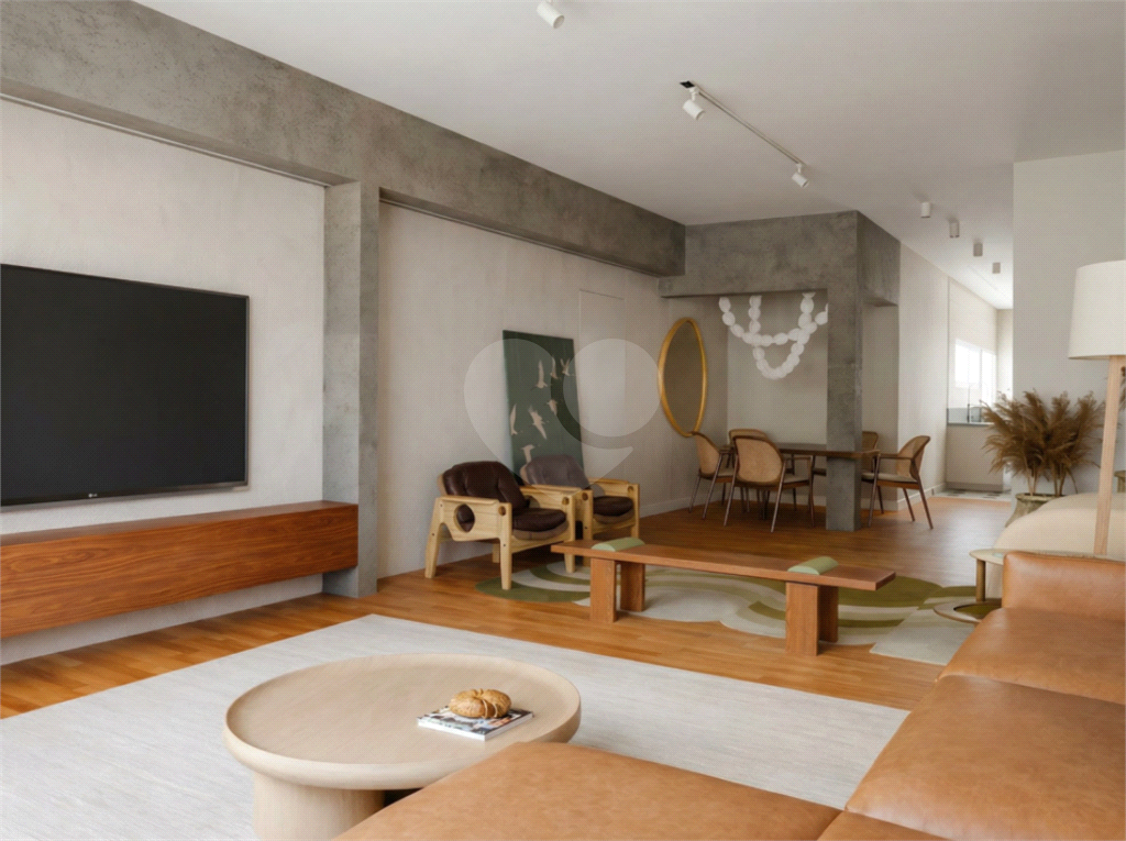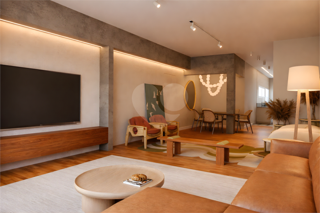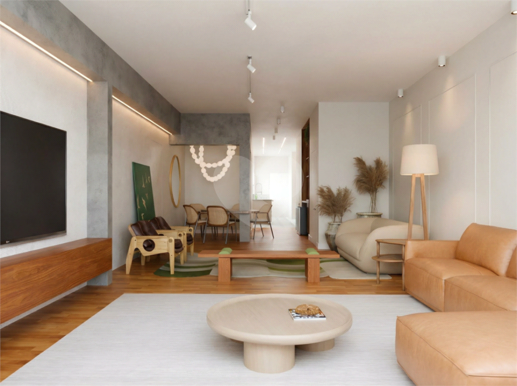 Sala ampla com janelas generosas, garantindo luminosidade e conforto. Piso de madeira em toda a sala e área íntima, trazendo elegância e aconchego.