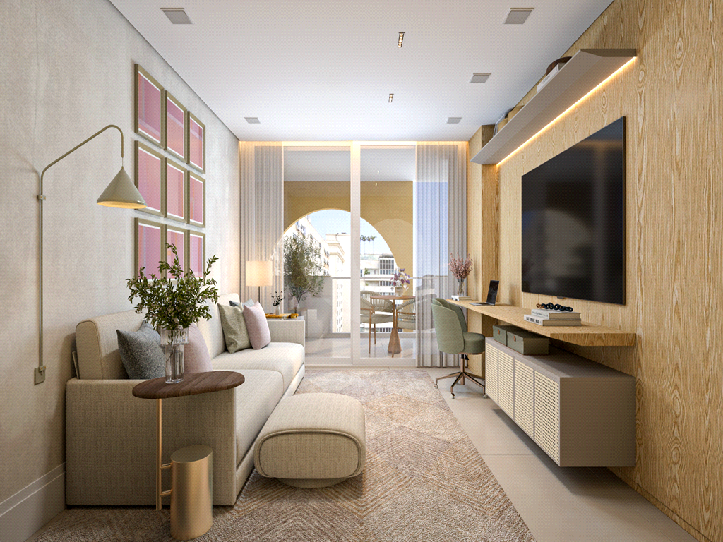 Amplo living com cômodo extra destinado à sala de TV e/ou home office e com acesso à varanda