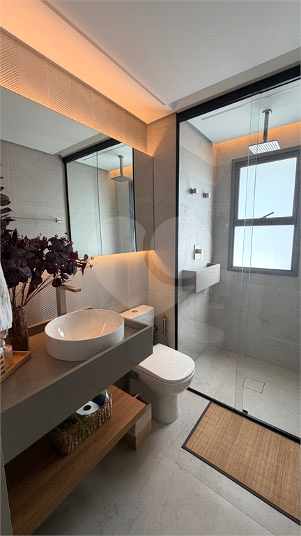 Conta com automação residencial, ar-condicionado em todos os ambientes e sistema de aquecimento a gás automático, que evita variações de temperatura ao utilizar os chuveiros.