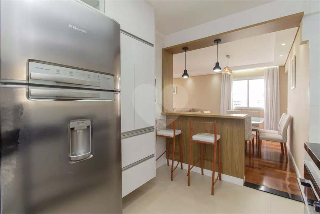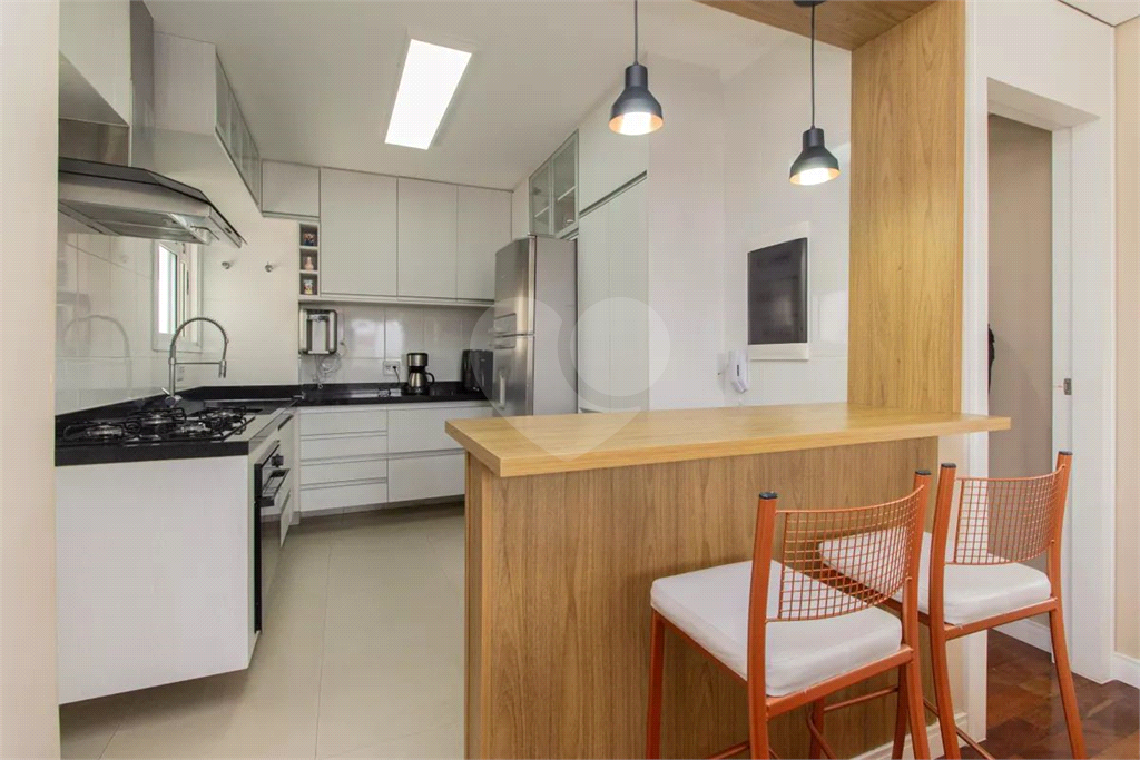 A cozinha americana é totalmente equipada com armários planejados, ideal para quem valoriza praticidade e integração no dia a dia.