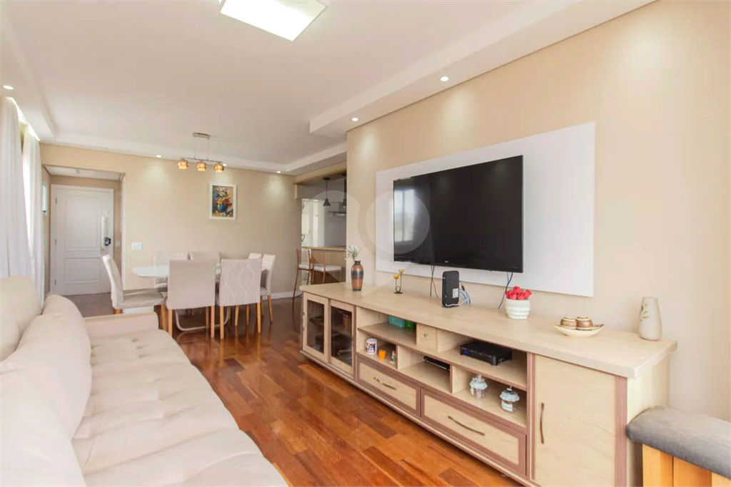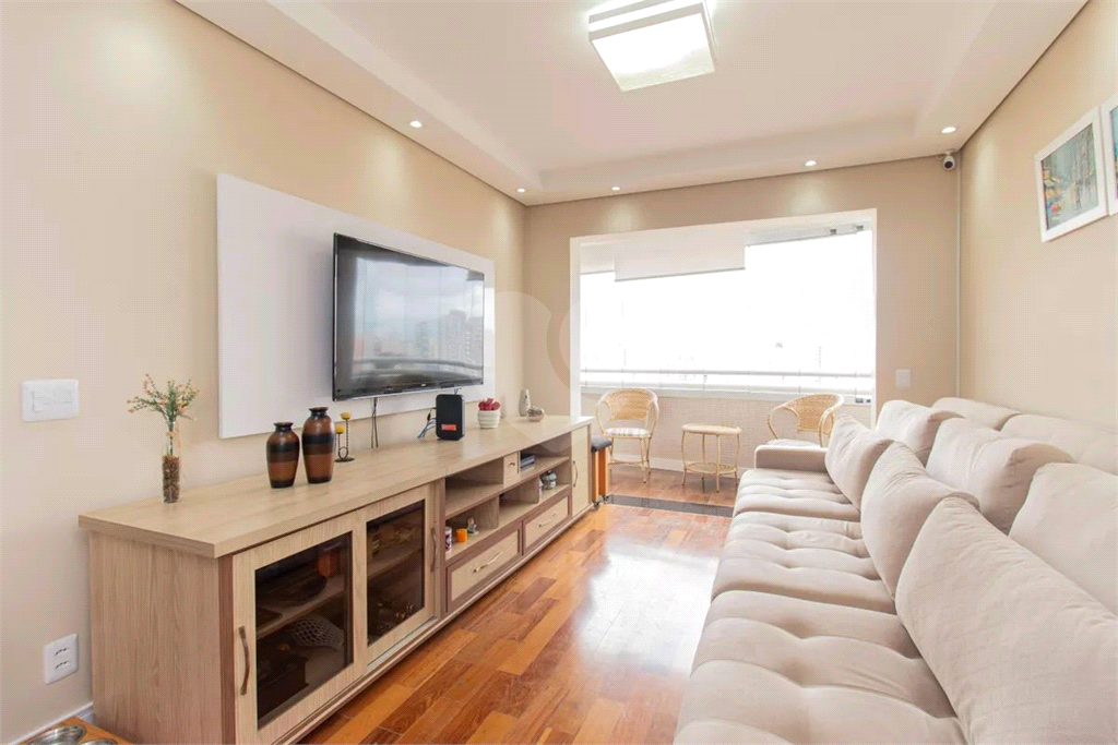 Com 117 m², o imóvel conta com uma planta funcional e ambientes bem integrados. A sala para dois ambientes se conecta à varanda unificada com fechamento em vidro, proporcionando amplitude e ótima iluminação natural. O piso em taco de madeira traz charme e elegância ao living.