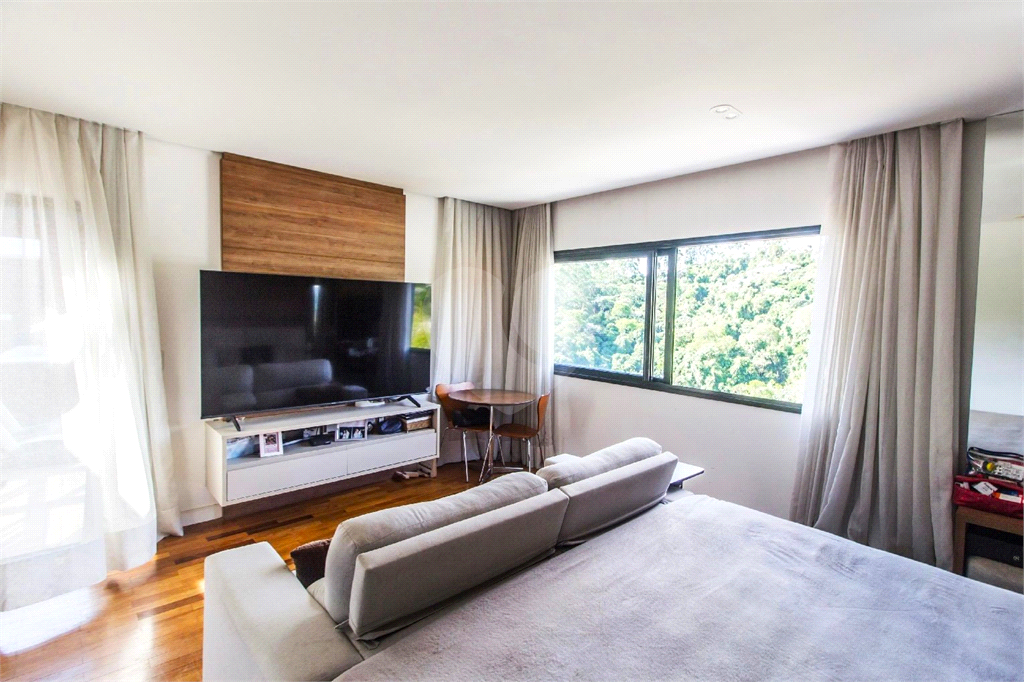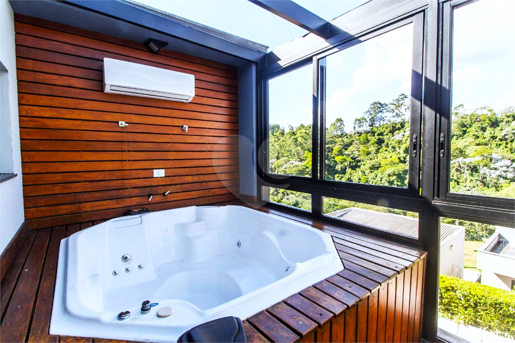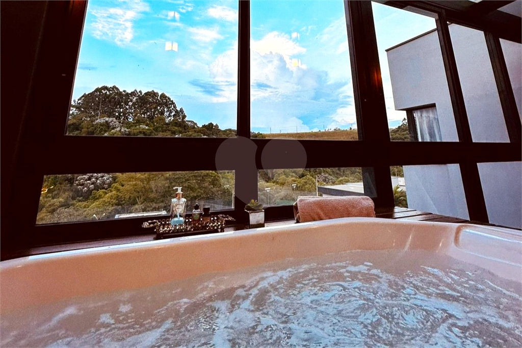 A Suíte Master é um capítulo à parte: ampla, com closet generoso, banheiro com cuba e duchas duplas e um diferencial raro — uma área envidraçada com jacuzzi voltada para a mata. Um espaço pensado para momentos de pausa, com privacidade e vista permanente!