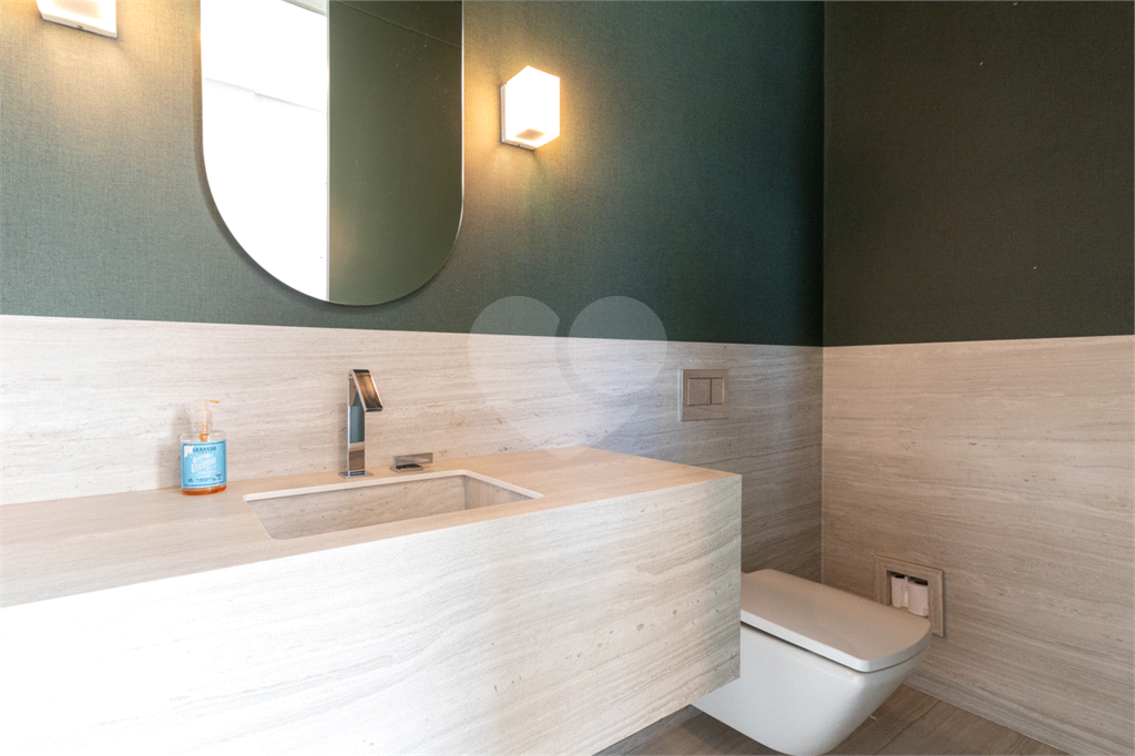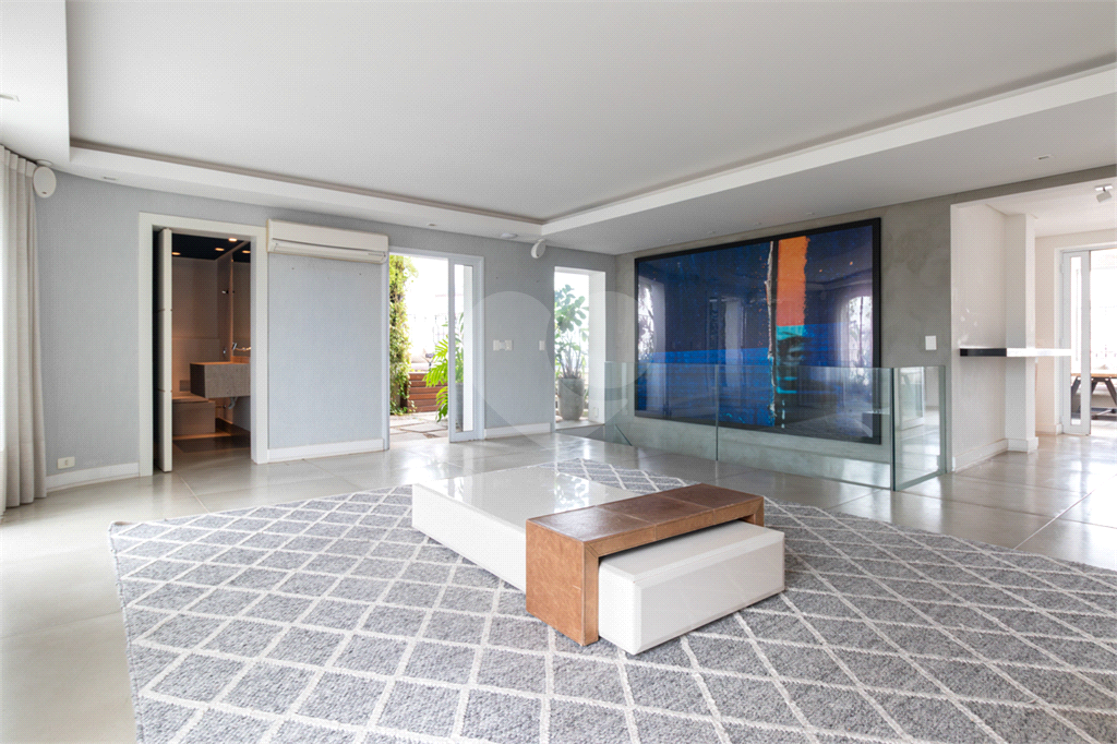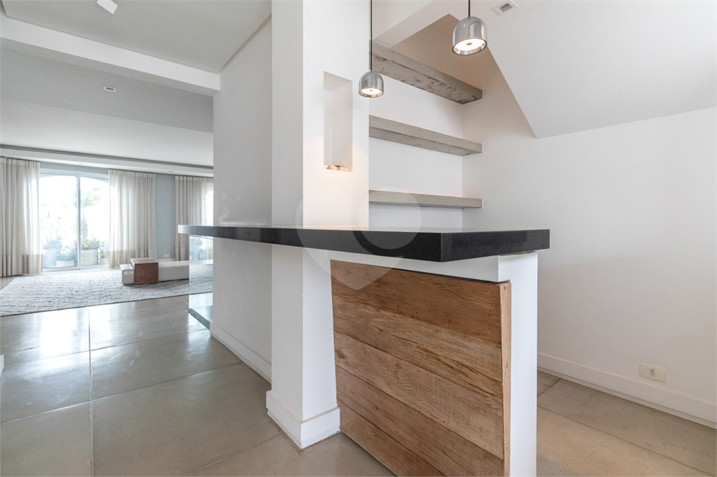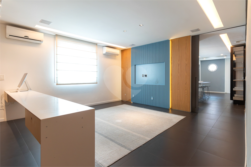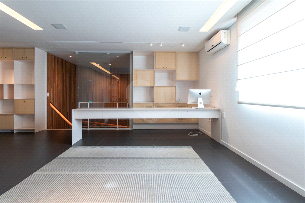 No piso intermediário, living, adega, escritório, lavabo, ampla sala de jantar e uma suíte perfeita para hóspedes. Nesse piso além da cozinha extremamente agradável e funcional, temos uma outra sala de TV que te convida e abraça.