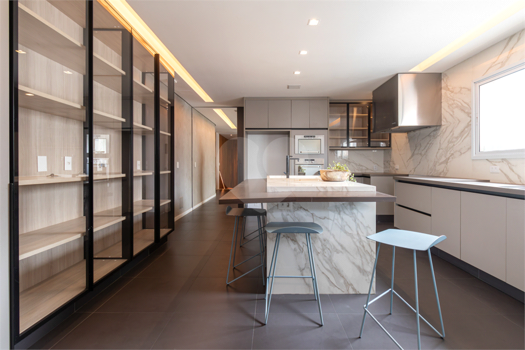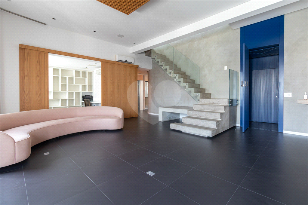 Com certeza, um diferencial é o elevador particular que atende os três andares dessa cobertura triplex.