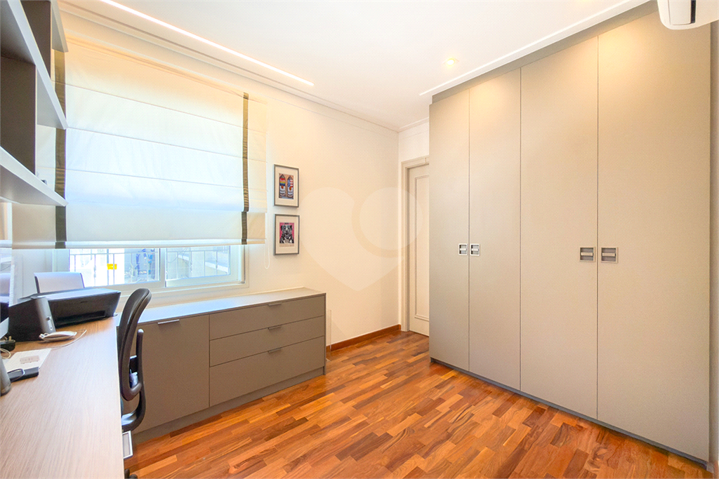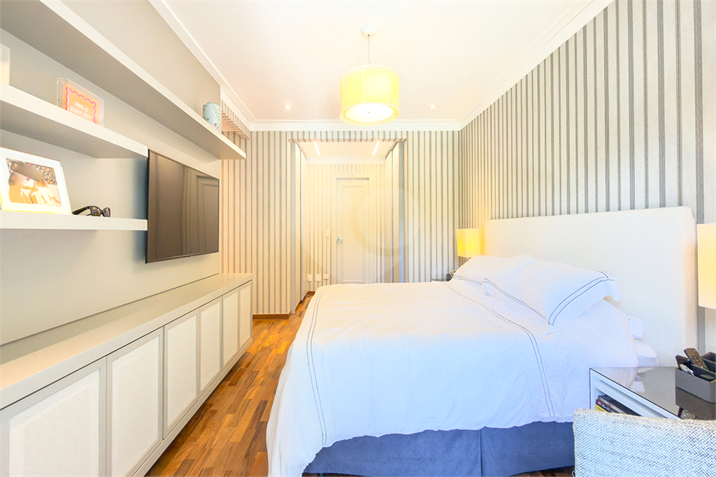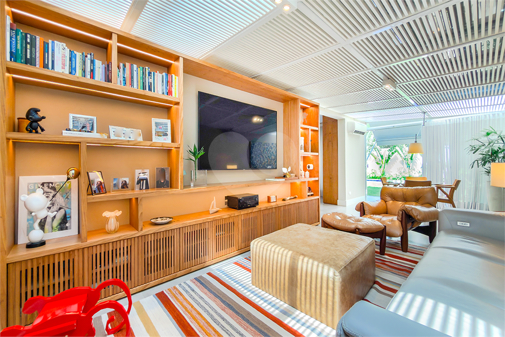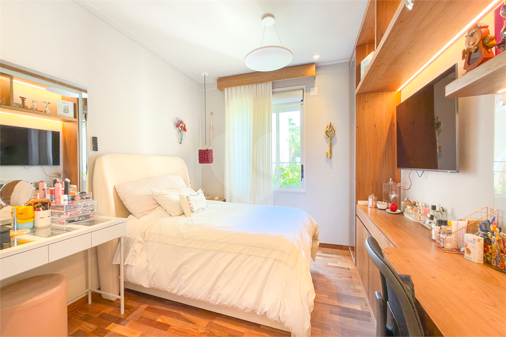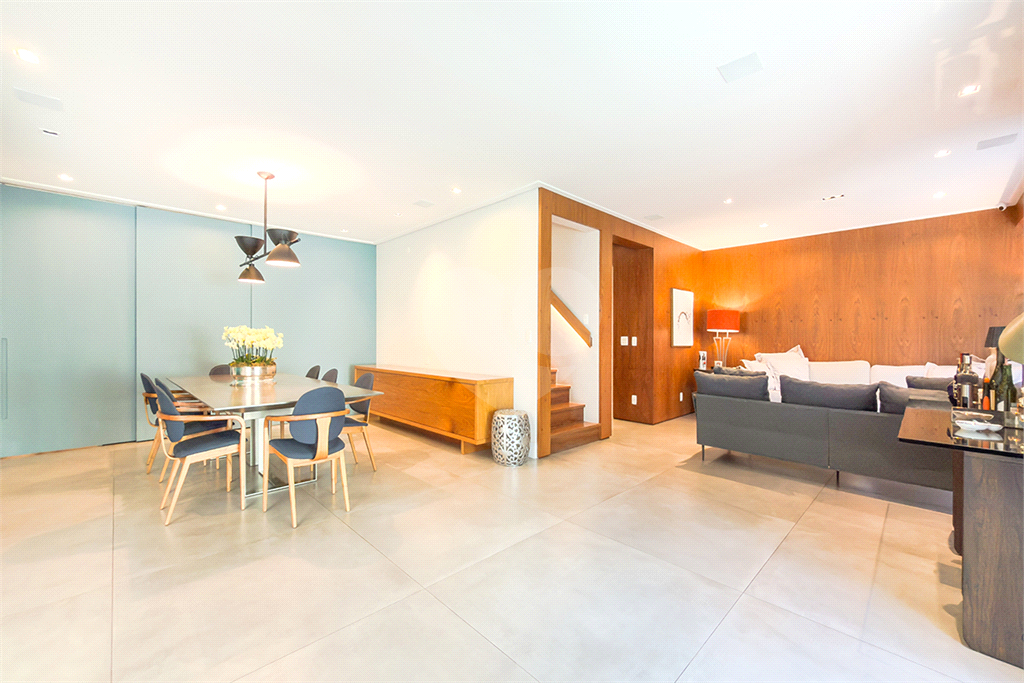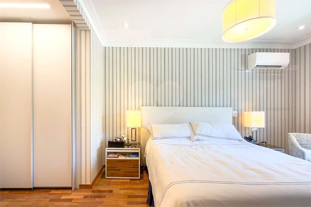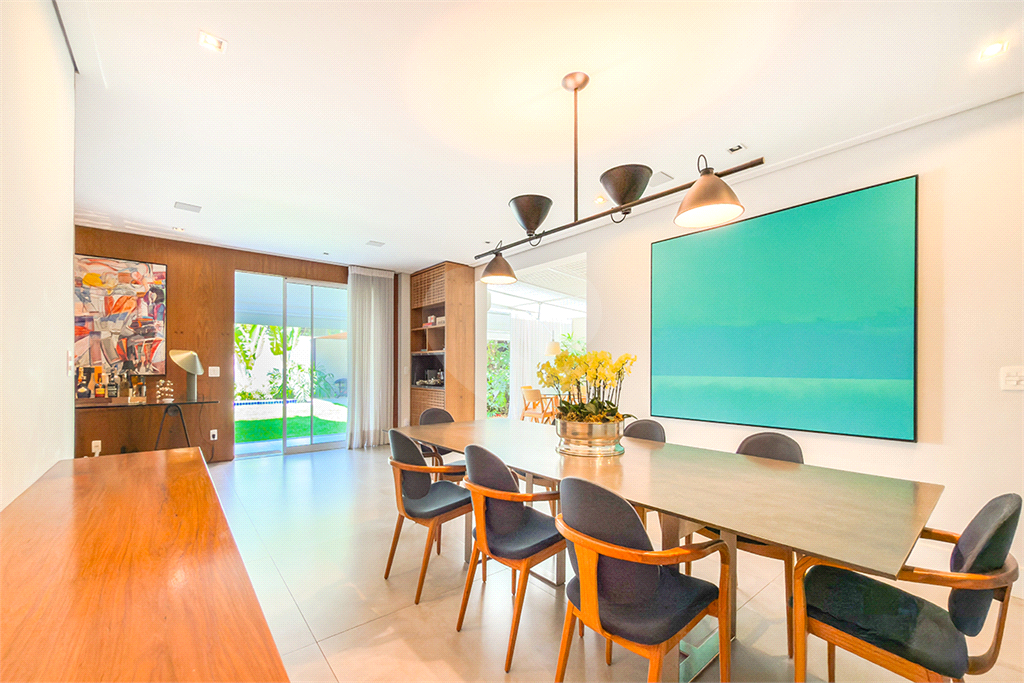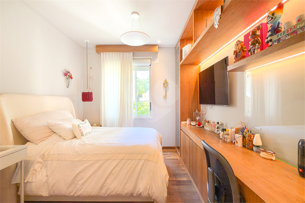 A marcenaria impecável, presente em todos os ambientes, incluindo a cozinha gourmet, reflete o cuidado em cada detalhe. O conforto térmico é garantido pelo ar condicionado em toda a casa, inclusive na cozinha. Um depósito generoso, dependências de funcionários e 4 vagas de garagem com acesso direto à residência, sua privacidade e conveniência são absolutas.