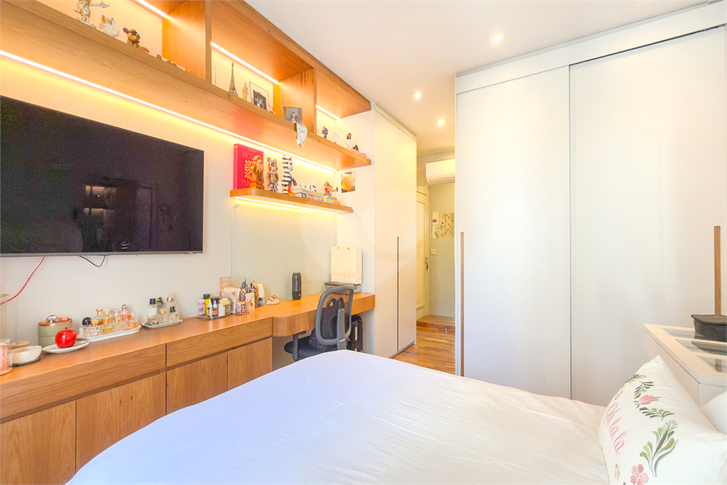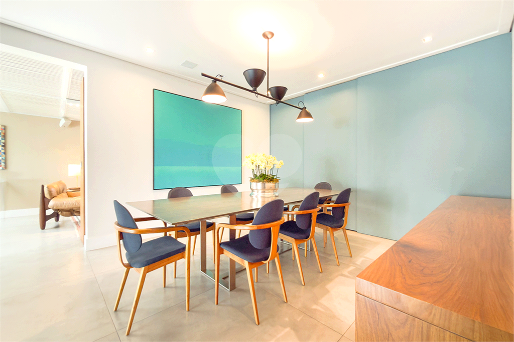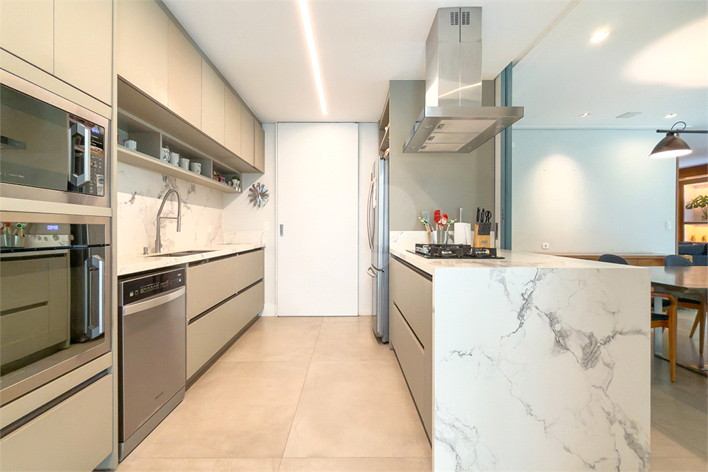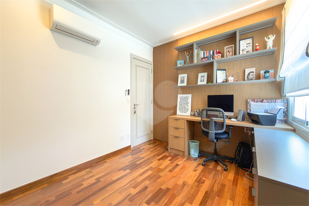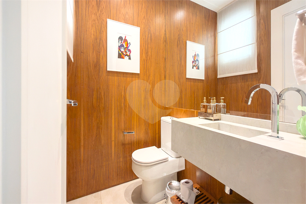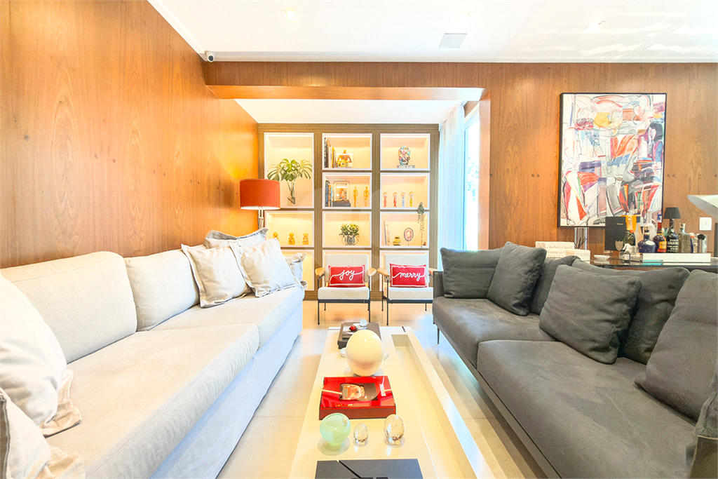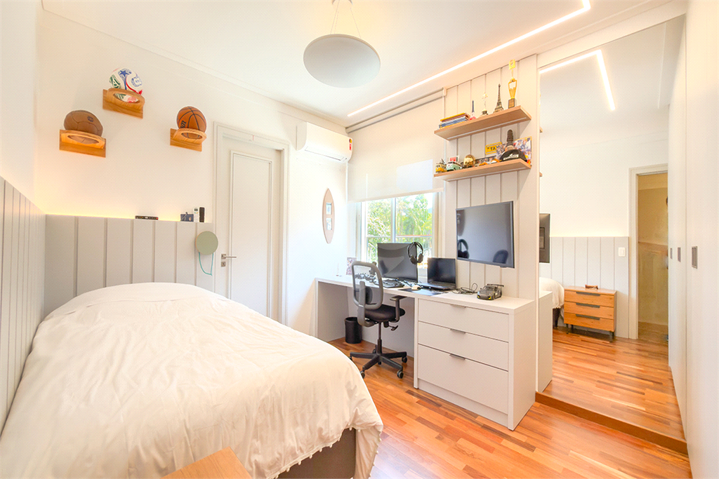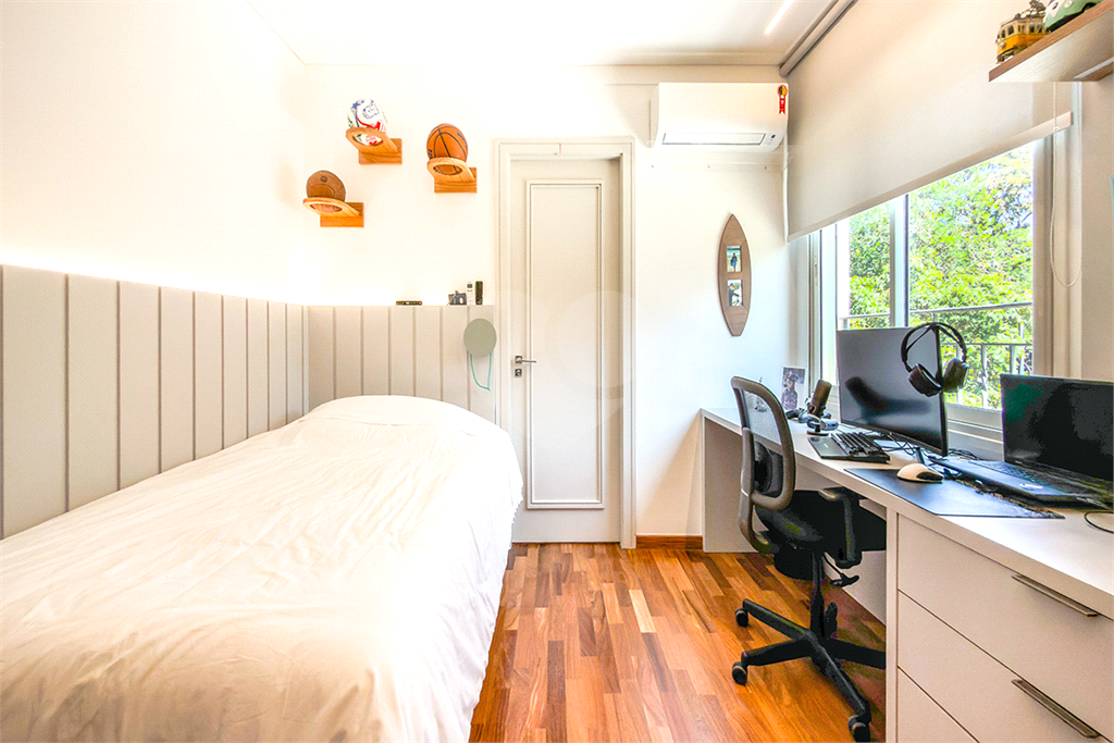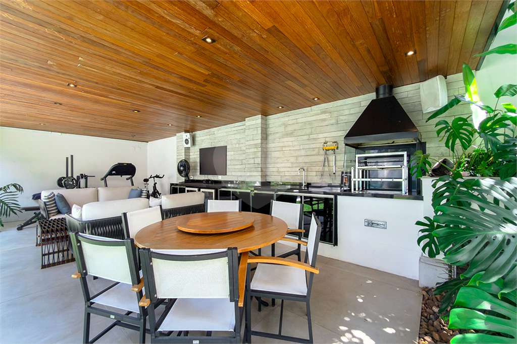 A marcenaria impecável, presente em todos os ambientes, incluindo a cozinha gourmet, reflete o cuidado em cada detalhe. O conforto térmico é garantido pelo ar condicionado em toda a casa, inclusive na cozinha. Um depósito generoso, dependências de funcionários e 4 vagas de garagem com acesso direto à residência, sua privacidade e conveniência são absolutas.