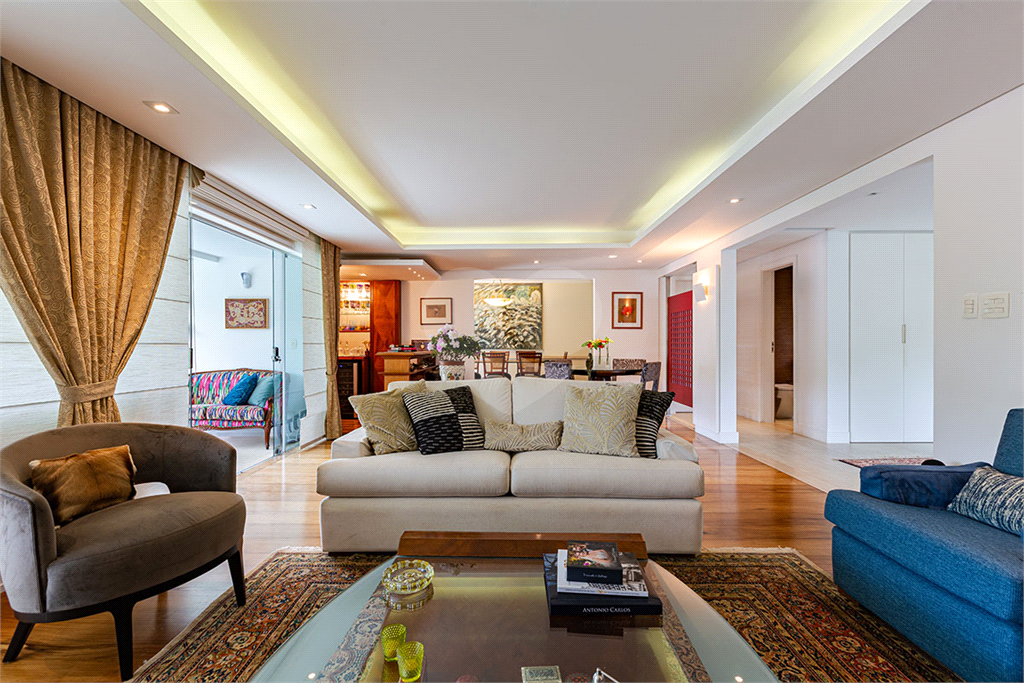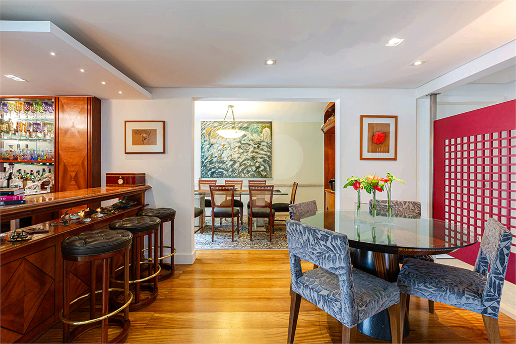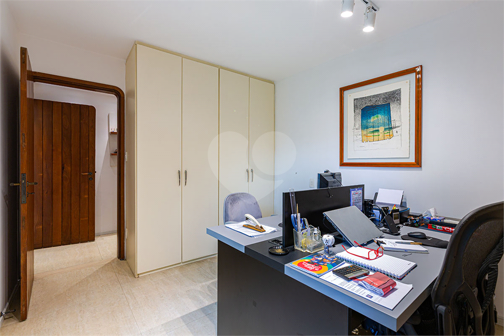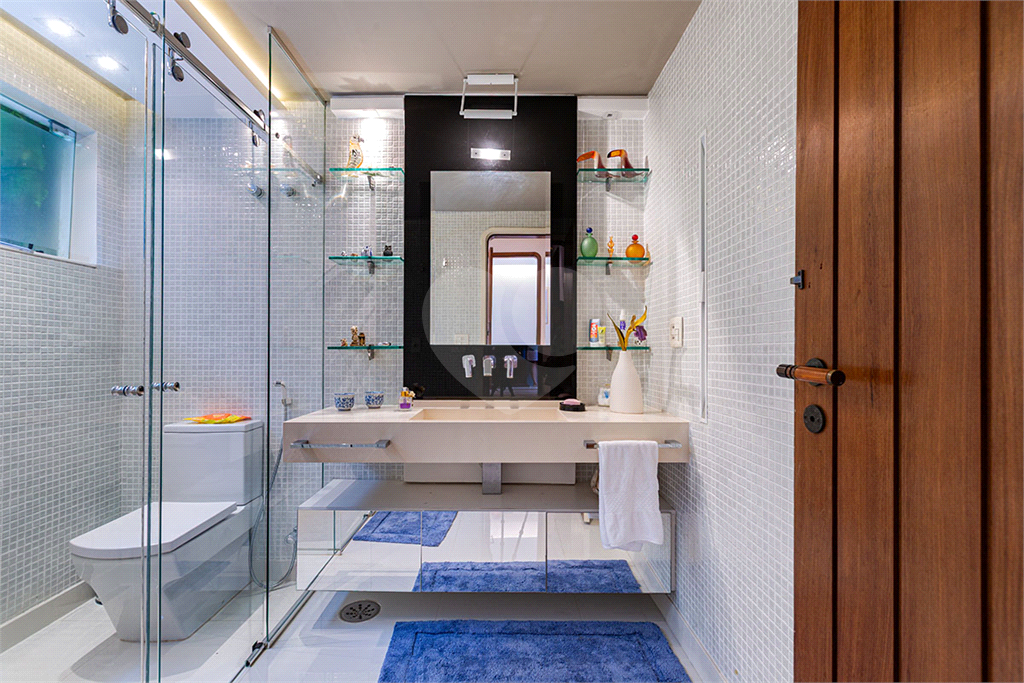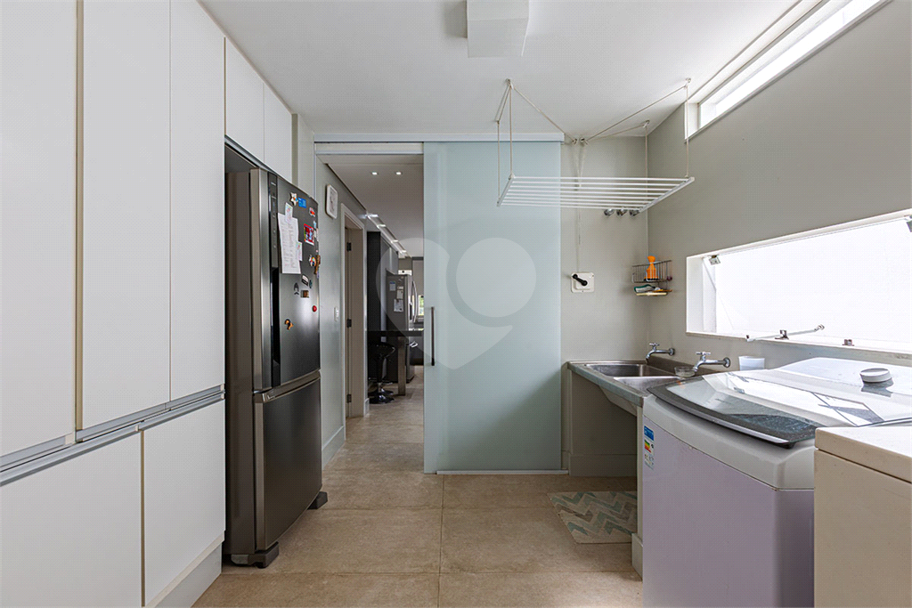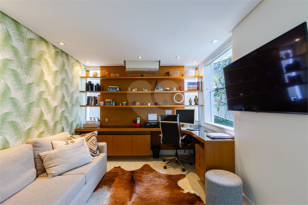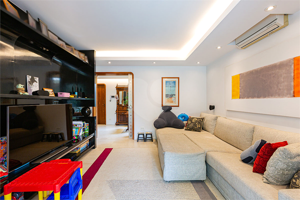 A área íntima dispõe de 2 suítes, sendo a suíte master com closet, banheiro com chuveiro e banheira separados, sapateira, rouparia, além de 1 suíte americana (dois dormitórios com ventilador de teto, banheiro compartilhado). Todos os quartos possuem armários de primeira linha, ar-condicionado nas suítes, sala de TV, adega, um pequeno e prático elevador de carga.