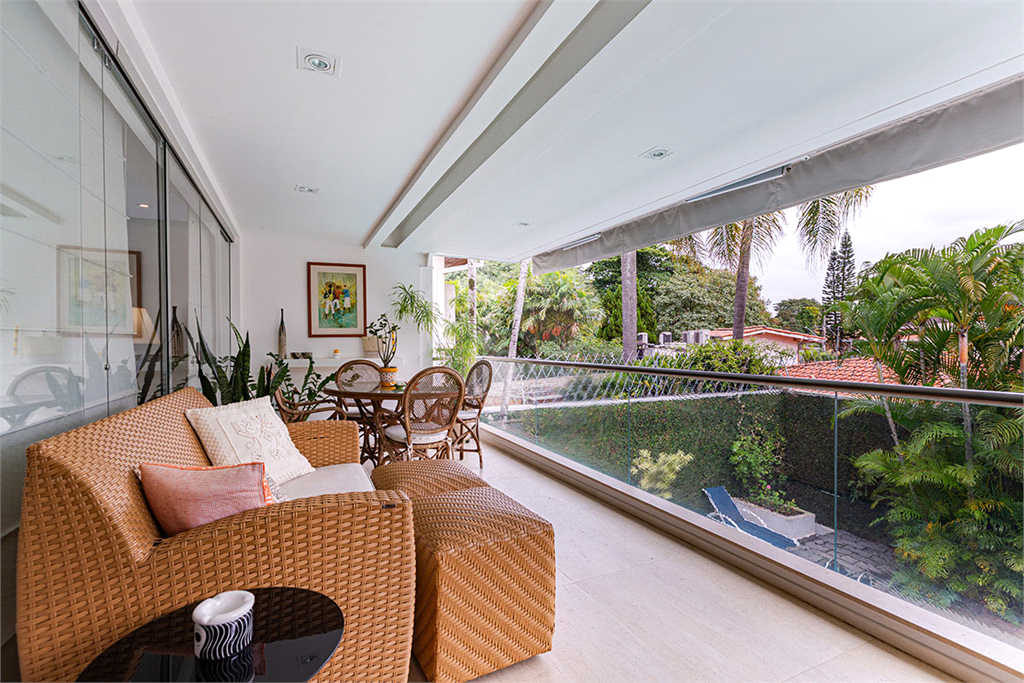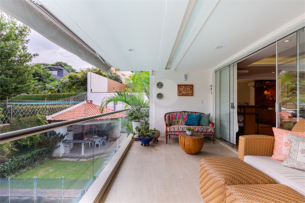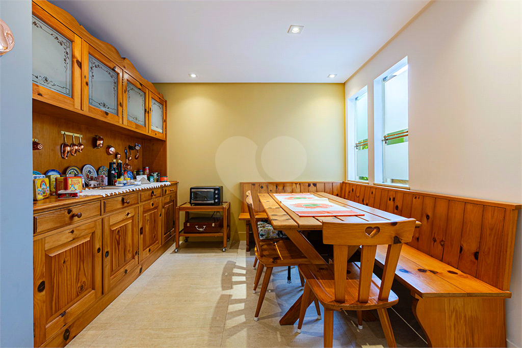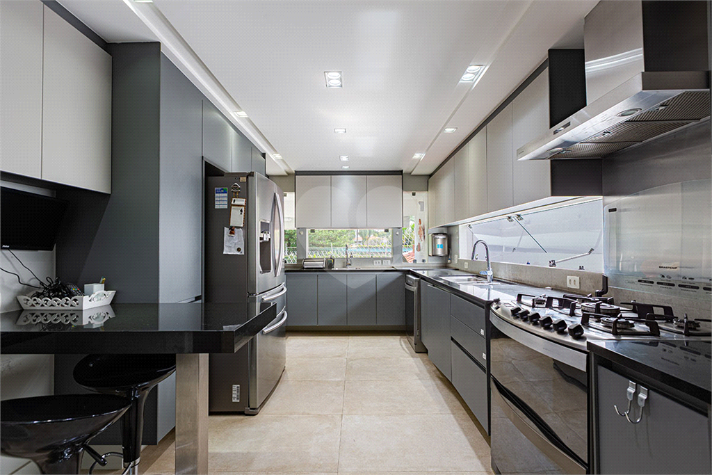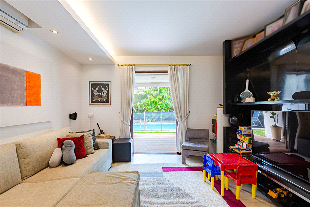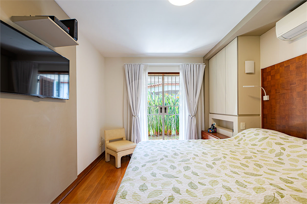 No térreo, sala de TV, chapeleira, sala de estar com varanda, bar completo, sala de jantar com varanda, ambientes com ar condicionado, cozinha, copa, lavanderia e dependência para funcionários com dois quartos e um banheiro no corpo da casa. Gás de cilindro e sistema de energia solar fotovoltaica.
