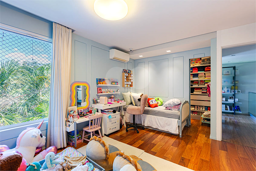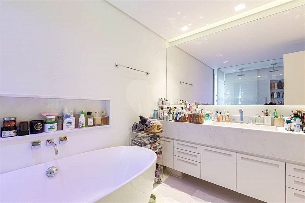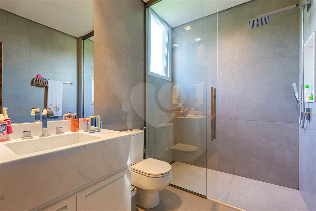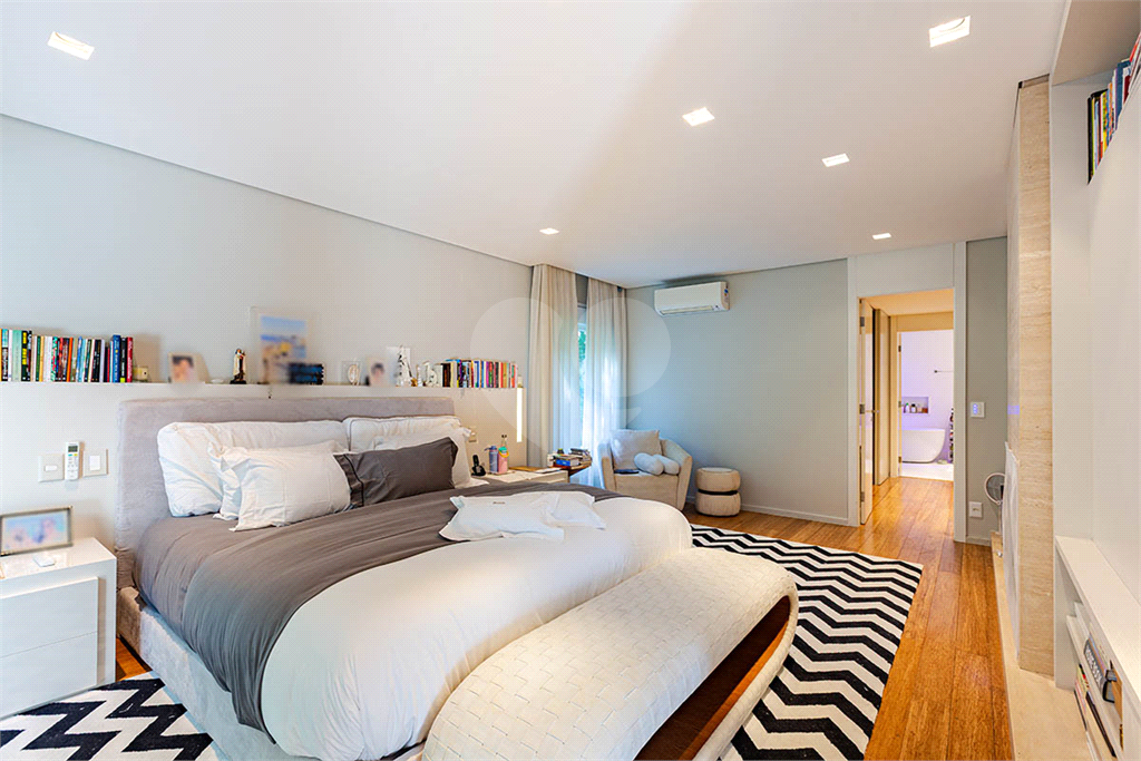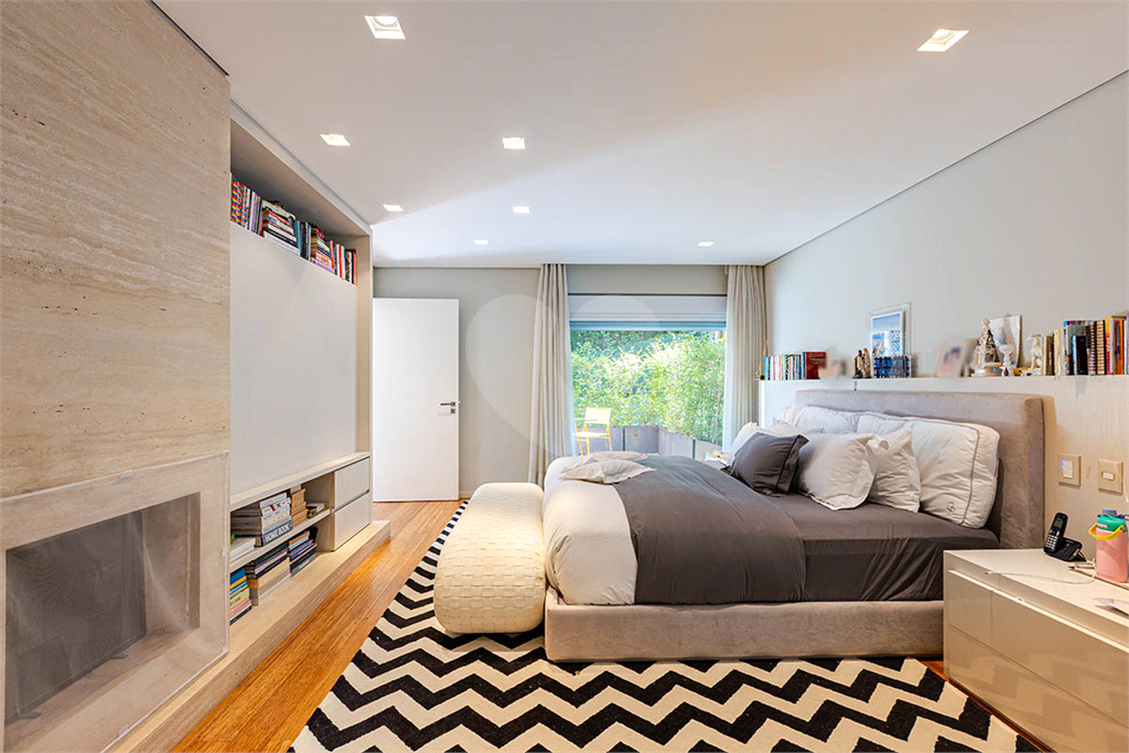 A Suíte Master oferece dois closets, dois banheiros, lareira, acabamentos em mármore e piso de madeira Perobinha, garantindo luxo e aconchego em cada detalhe.